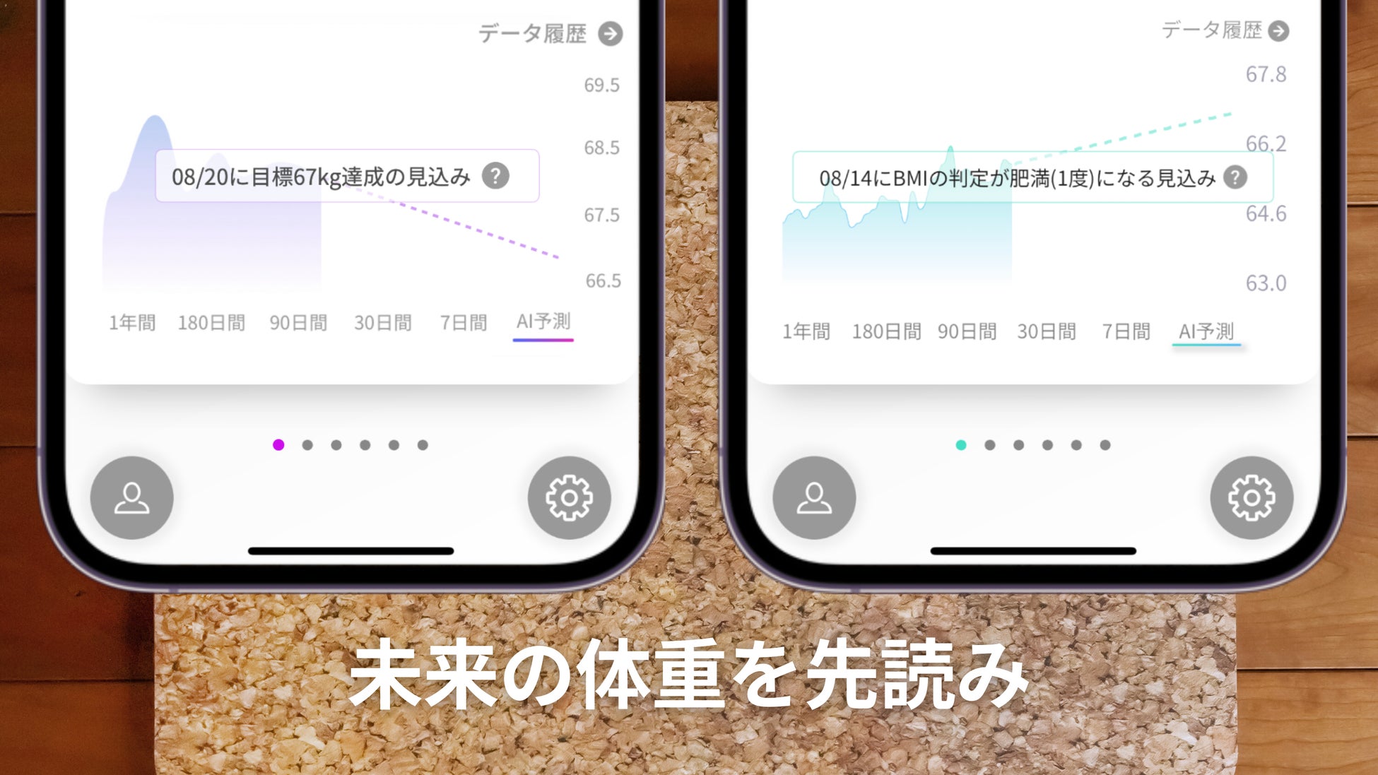 体重変化の傾向をAIが解析し、未来の体重変化を先読みします。