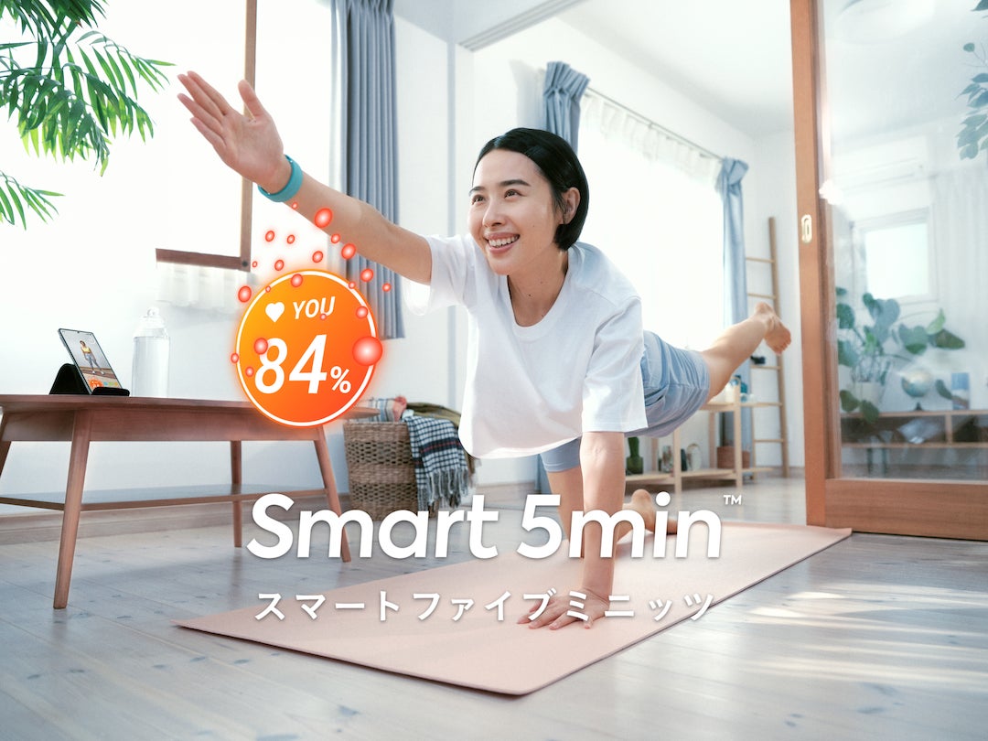 そこで、誰でも始めやすく続けやすい運動習慣をデザインした結果、「朝の5分間」だけで運動習慣が定着する、心拍数連動のオンラインエクササイズサービス「Smart 5min(読み:スマートファイブミニッツ)」の開発・発表に至りました。